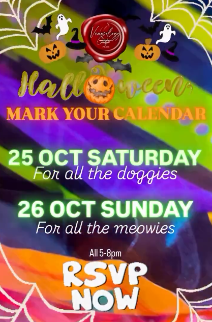 This year, Venusology Café is going all out with two paw-some parties in one weekend — one for dogs and one for cats! Whether your furry friend barks or purrs, it’s time to dress up, mingle, and celebrate Halloween in true pawrty fashion.