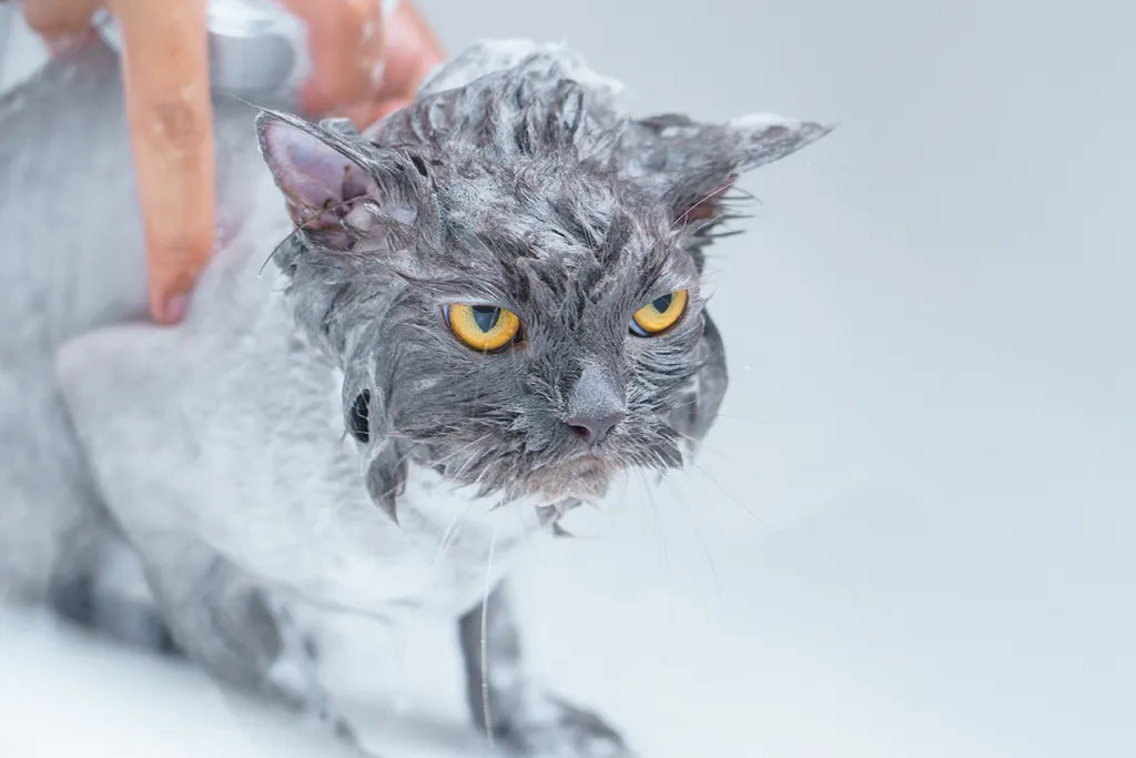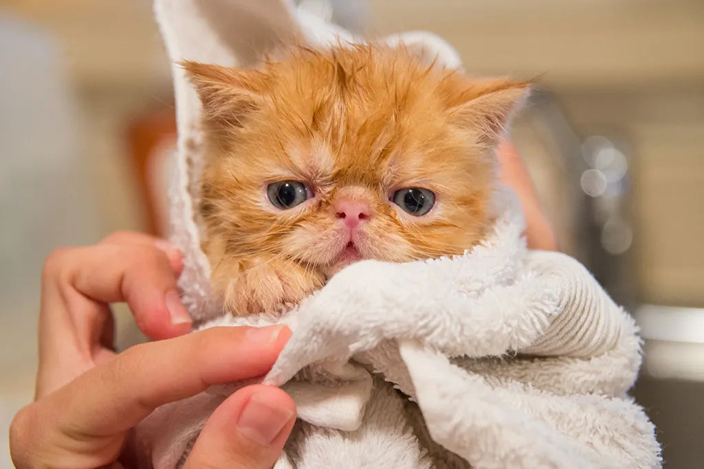 Bathing might be something you consider should be done to long-haired cats often, but like other cats, you must bathe them only when necessary when something caught on to their fur or if they have diarrhea. You don't want to strip the natural oils from their skin and coat. When you do bathe them, use a mild shampoo made specifically for cats. Be sure to rinse all the soap out of their fur. After the bath, use a conditioner made for long-haired cats. Again, be sure to rinse it all out. Gently towel dry your cat (do not rub) and then comb through their fur with a wide-toothed comb to remove any knots or tangles like how you brush them regularly.