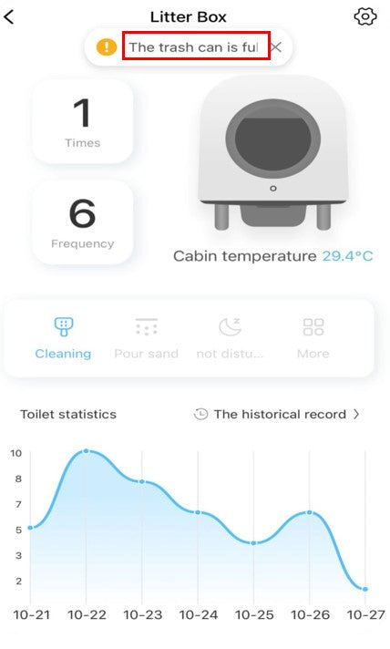 Cat Litter Bin is always indicated as "Full" even though it has been emptied.