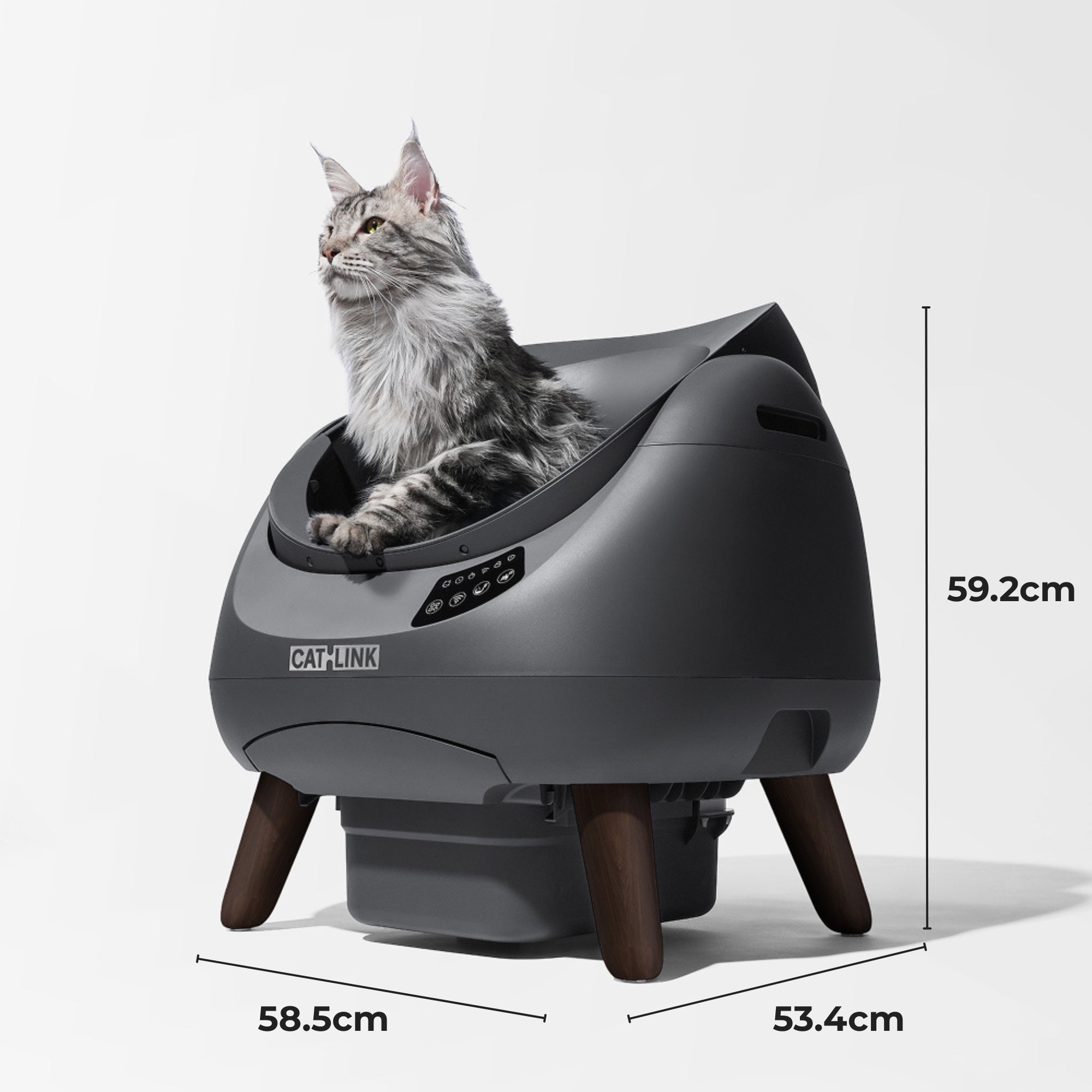 The CATLINK Open-X features an open-top design that gives cats a familiar, spacious 360° view — reducing anxiety and helping even large breeds adapt easily. It’s self-cleaning, odor-controlling, and connects via dual-band Wi-Fi (2.4 & 5 GHz) for real-time monitoring through the CATLINK App.