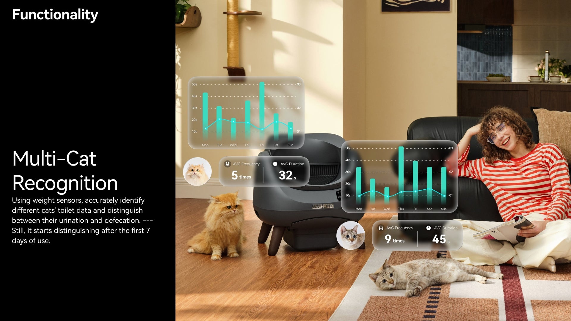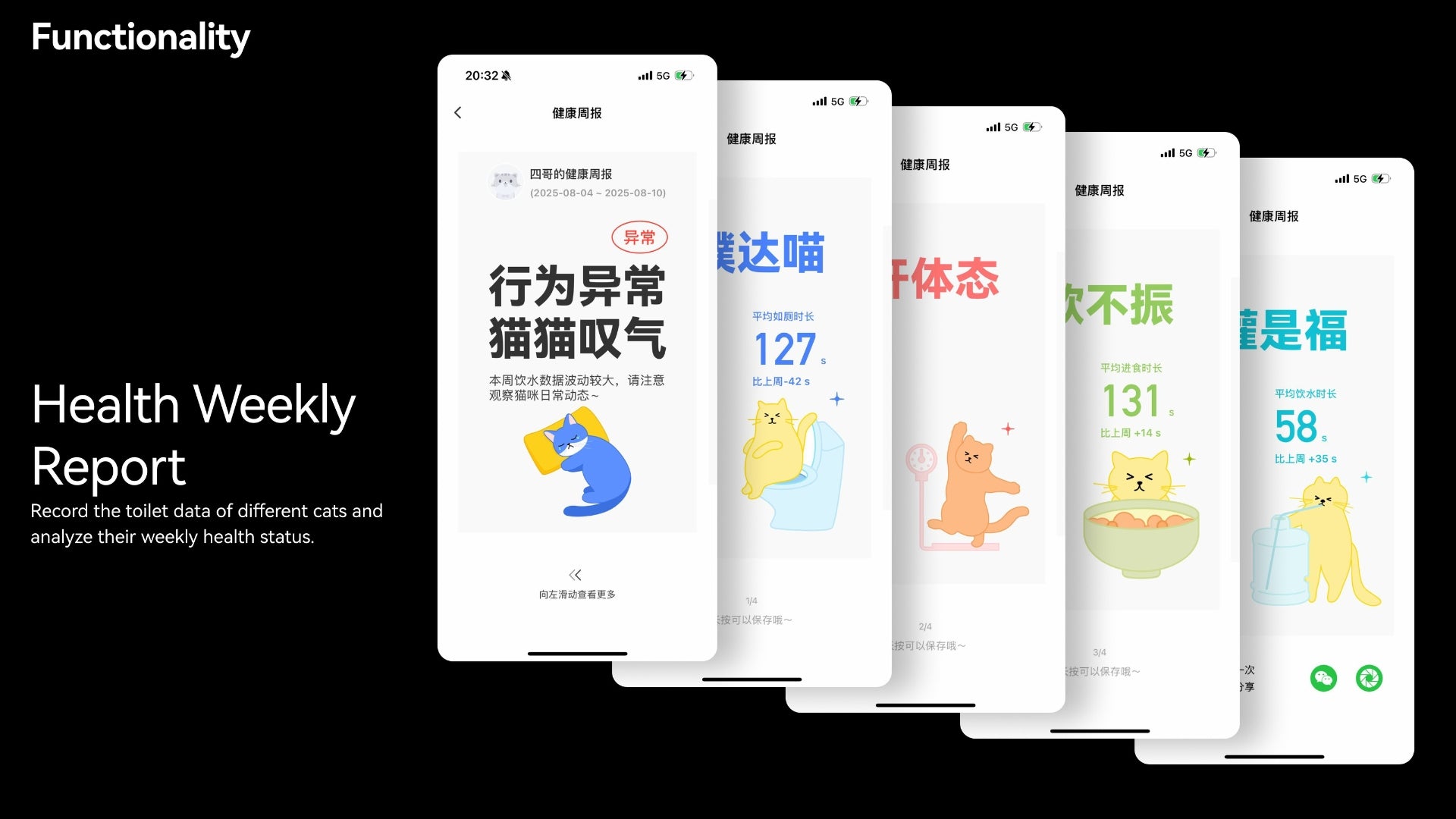 Remote monitoring & control, toilet data tracking, multi-cat recognition, health weekly report