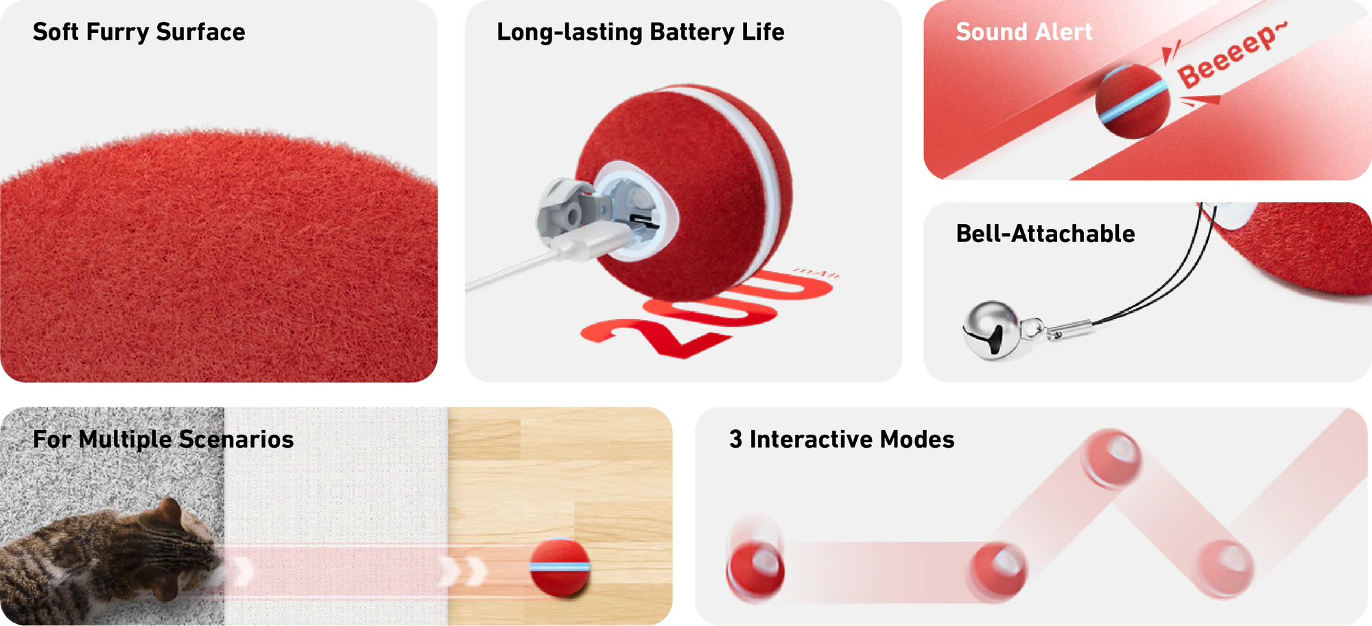 ✅ Powerful Performance on Any Surface: Works seamlessly across various surfaces—from hardwood floors to thick carpets—ensuring your cat enjoys endless fun, no matter where they play.