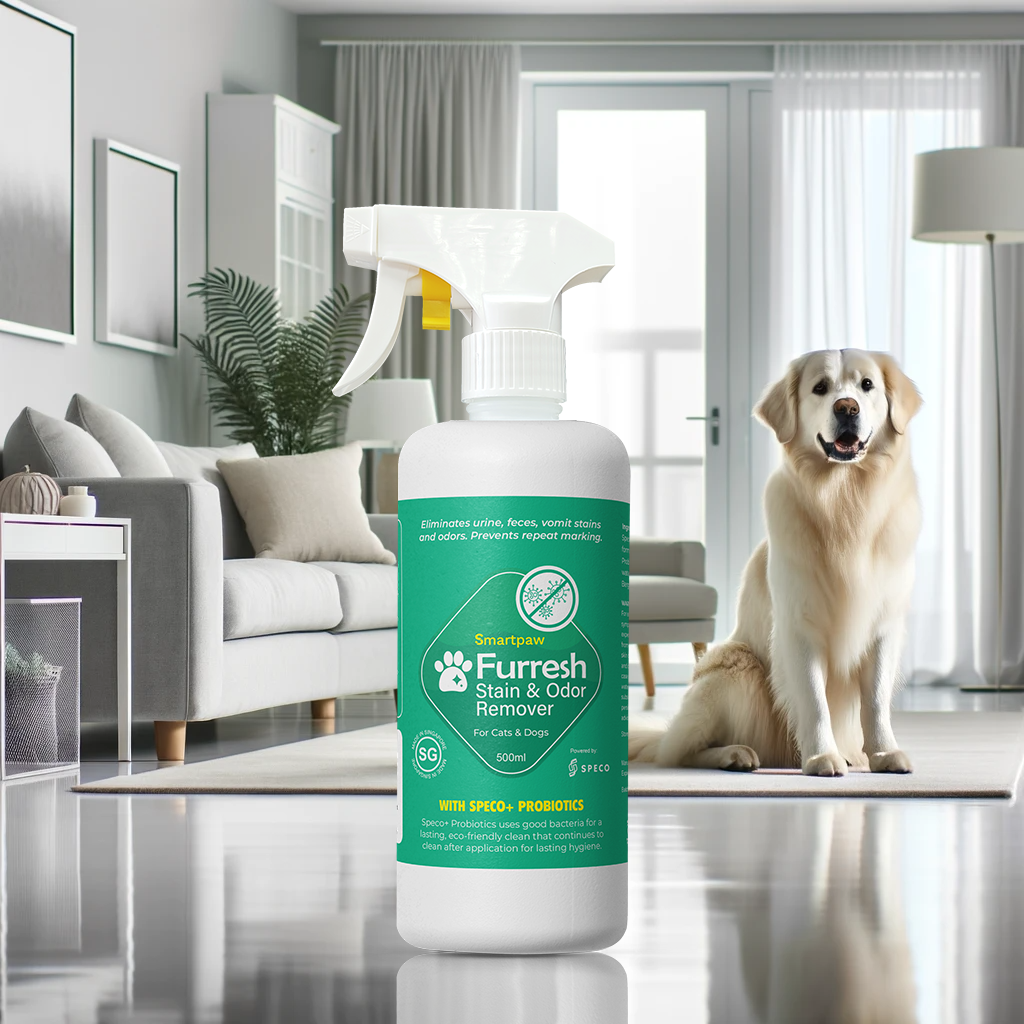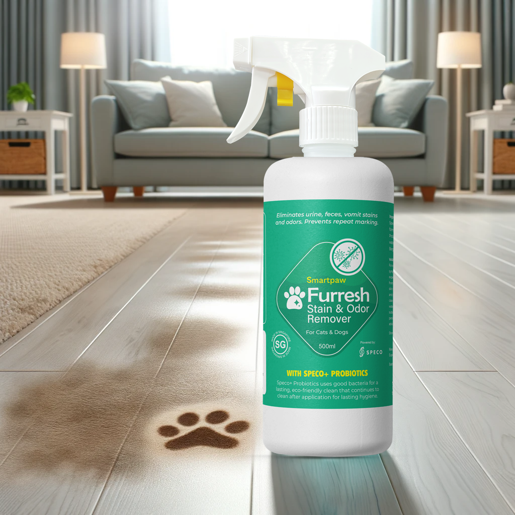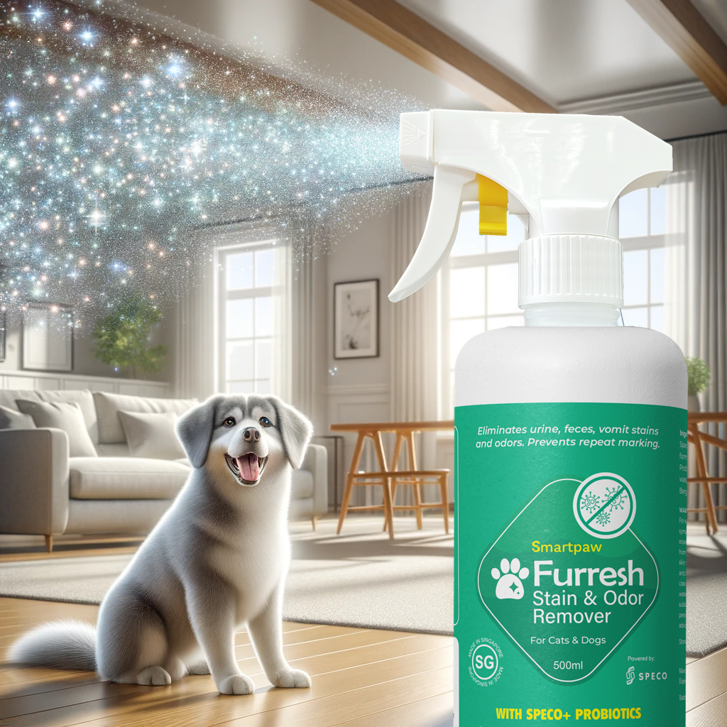Discover the secret weapon for pet owners—Furresh Stain & Odor Remover. Not just a cleaner, but a guardian of your home's purity, powered by nature's own SPECO+ Probiotics. Bid farewell to stains and odors, and hello to a home that stays clean, inviting, and serene. Join the Furresh family today and feel the difference with every spray.
