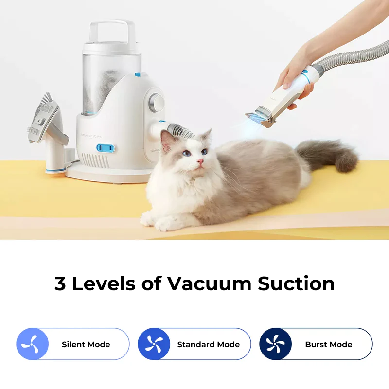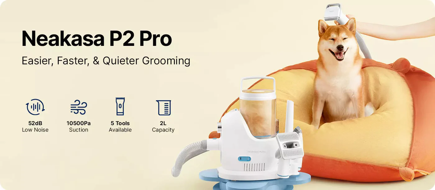 Seeking an ideal grooming solution for your pets without causing them stress or discomfort? Discover the Neabot Neakasa P2 Pro Pet Grooming Vacuum Kit! Expertly designed for cats and dogs of all fur types, our enhanced version boasts a spacious 2L capacity and stronger suction power! The Neakasa P2 Pro offers a comprehensive grooming solution that's user-friendly, efficient, and budget-friendly. Tailored for household pets, its vacuuming feature removes harmful particles during grooming.