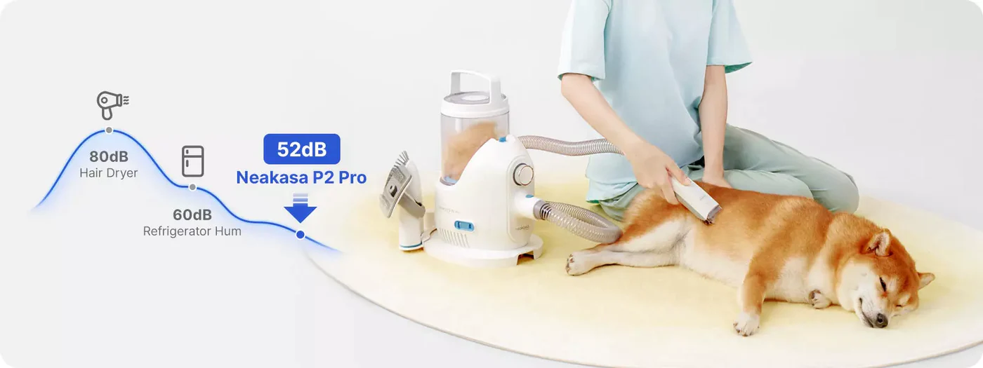 Experience a quieter grooming session with the Neabot Neakasa P2 Pro. Designed to operate at a mere 52dB, it ensures a stress-free environment for your pet. Now, grooming becomes a calm and peaceful activity, reducing anxiety for both you and your furry friend. Say goodbye to the loud buzz of traditional grooming tools and embrace tranquility with our low-noise design.