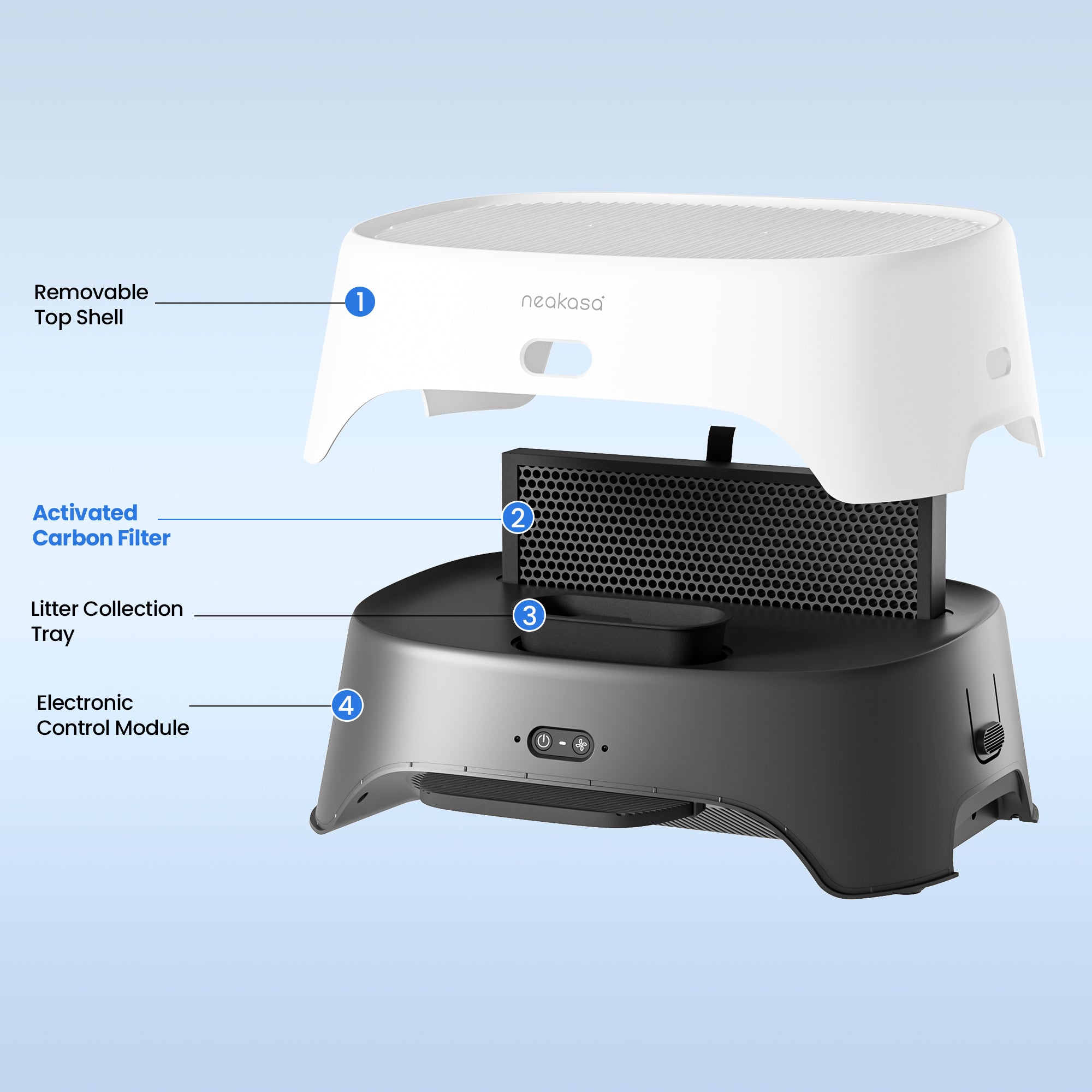 Engineered with high-density activated carbon, the Neakasa AirStep delivers powerful odor adsorption and long-lasting freshness. Its advanced filter design captures smells, dust, and pet hair efficiently, ensuring your litter area stays cleaner, healthier, and odor-free.