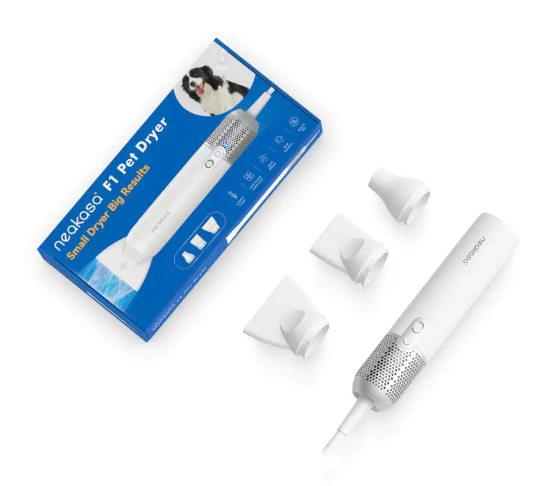 Crafted with convenience in mind, this lightweight and portable solution weighs a mere 1.2lbs, making it effortless to carry and use. Whether you're hitting the road for a weekend getaway or simply heading to the park, this compact dryer ensures that your furry friend stays looking their absolute best. Its sleek design and efficient performance make it a must-have for pet owners on the move. With the Neakasa F1 Dryer, grooming is no longer confined to the home; it's an adventure you and your pet can enjoy together, wherever life takes you. Experience the freedom and flexibility of on-the-go pet grooming with a tool that's as versatile and vibrant as your pet's personality.