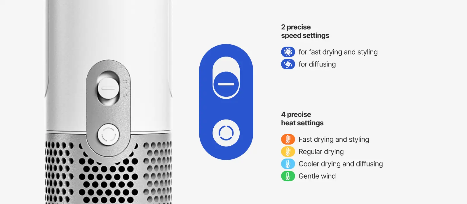The intelligent heat control system continuously monitors the temperature of the air as it flows through the dryer. This allows the device to make instant adjustments, ensuring that the air remains at the optimal temperature for your pet's skin and coat.