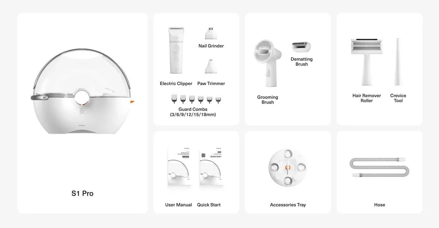 With its 3L dust box, the S1 Pro can handle the fur of large dogs or multiple pets, allowing for extended grooming sessions without frequent interruptions.