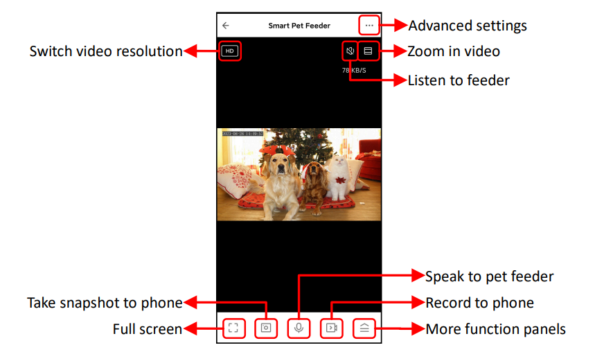 7. Then the App will be then directed to the video interface for the pet feeder.